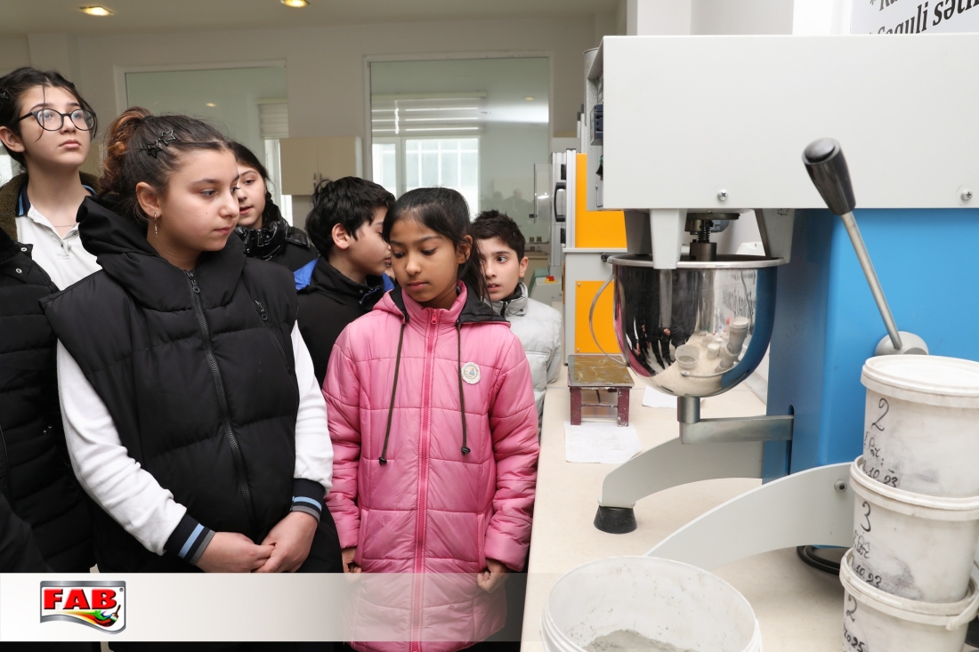 12.03.2024-cü il tarixində Bakı şəhəri Binəqədi rayonu 143 №-li tam orta məktəbin bir qrup 7-ci sinif şagirdi FAB Şirkətlər Qrupunun istehsal müəssisələrində oldular. Gəzintə zamanı şagirdlər məhsulların hazırlanma prosesini izlədilər, FAB Akademiyasının nəzdindəki Keyfiyyətə nəzarət laboratoriyalarında görülən işlərlə bağlı məlumatlar öyrəndilər. Boya emalatxanasında rəng çeşidliliyi sınağını icra etdilər. Sonda ekskursiya iştirakçılarına şirkətimiz adndan simvolik hədiyyələr təqdim edildi. Xatirə şəkli çəkdirildi.